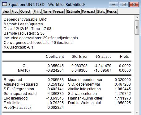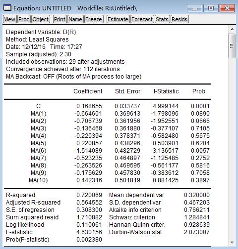 请问在eviews命令输入ls r MA(1)与ls r MA(1)MA(2)有什么区别