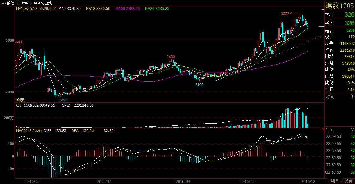 何时开空单,对比两张图,螺纹一浪高过一浪,并不是空单行情的开始图形,PVC,突破前低,MACD进入水下,相比较更适合开空单