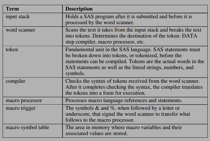 several terms are used to describe SAS processing: