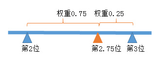 25%位是第2.75位(1+(8-1)*25%=2.75),第2.75位介于第2位和第3位之间,距离哪位较近,哪位数据的权重较大,所以第3位数据的权重是0.75,第2位数据是权重是0.25,则25%位的值=13*0.75+12*0.25=12.75;
