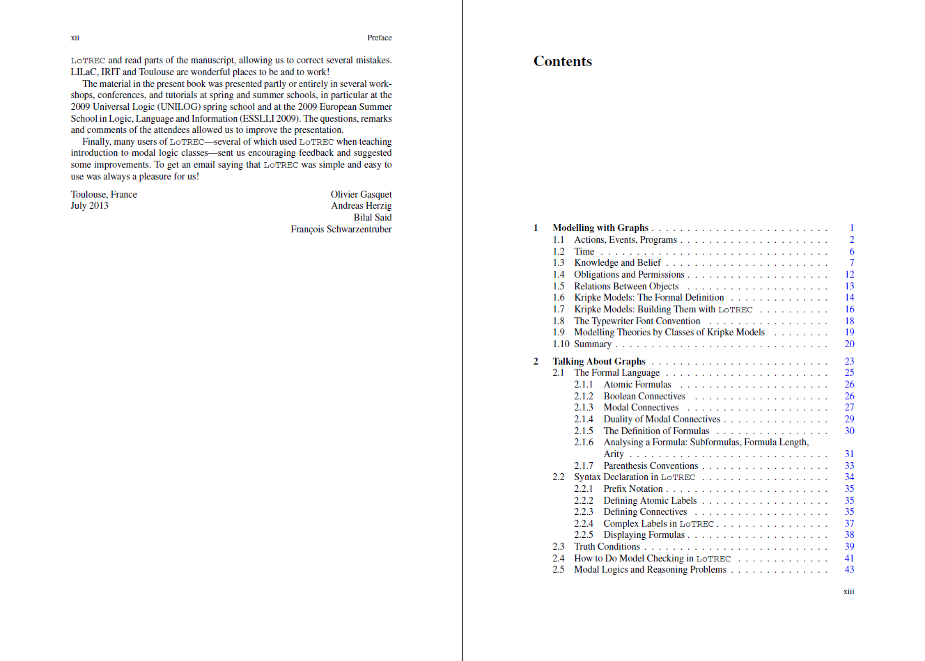 www.irit.fr/Lotrec). LoTREC allows to check whether a given formula is true at a given world of a given model and to check whether a given formula is satisfiable in a given logic. The latter can be done immediately if the tableau system for that logic has already been implemented in LoTREC. If this is not yet the case LoTREC offers the possibility to implement a tableau system in a relatively easy way via a simple, graph-based, interactive language.