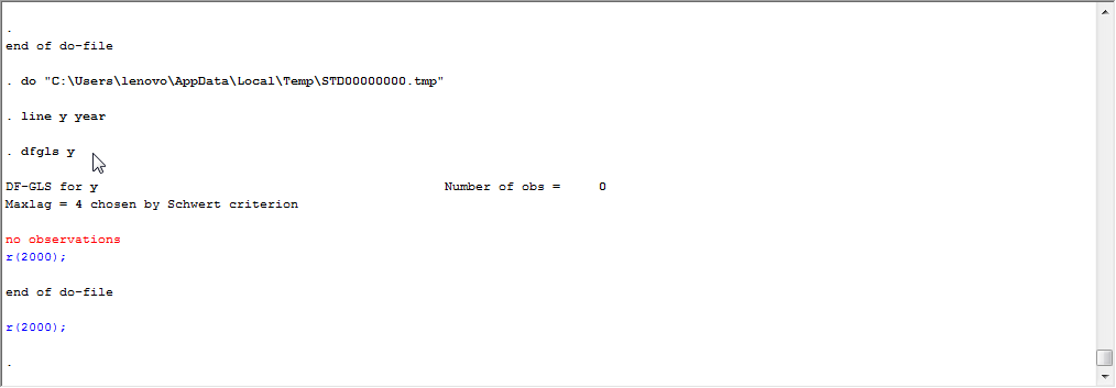 求助各位大神,我是自学stata,根据老师给的时间序列模板进行模仿的
