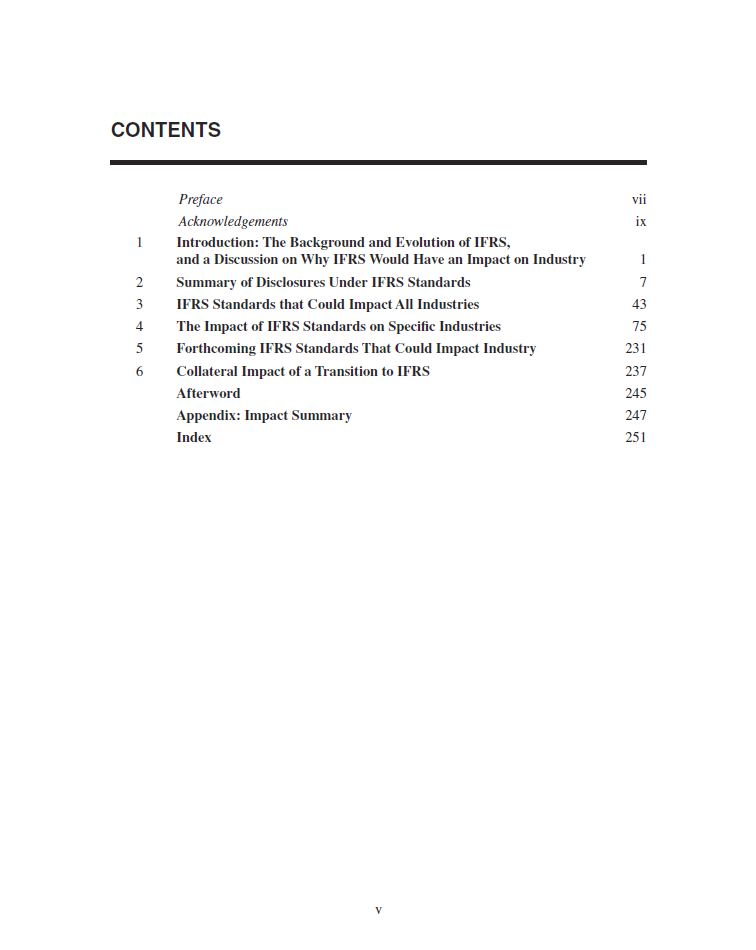 Opening with an overview of IFRS, including a summary of all the standards, the book goes on to provide detailed coverage of the standards that can impact all industries, including IAS-40, IFRS 1, and IFRS 5. Thereafter, it offers practical advice and guidance on the application of IFRS in specific industries, including automotive; oil and gas; bio-sciences; infrastructure; airlines; media and communications; government-owned entities; mining; software; banking and financial services; insurance; FMCG; shipping; pharmaceuticals; telecoms; real estate and construction; power; SMEs; retail; e-commerce; and the service sector. The book concludes with a discussion on the collateral impact of implementing IFRS and how forthcoming IFRS Standards could impact specific industries.