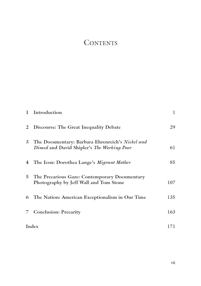 Inequality, Poverty and Precarity in Contemporary American Culture