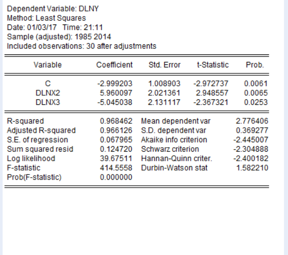 我用的对数模型,进行相关性检验的时候存在相关性,就按照广义差分法修正了。但最后的结果不知道怎么解释,dlny和dlnx2、dlnx3的关系怎么解释?
