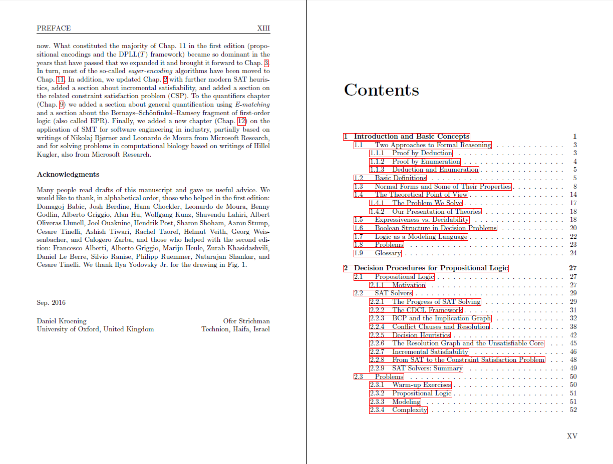 The first edition of this book was adopted as a textbook in courses worldwide. It was published in 2008 and the field now called SMT was then in its infancy, without the standard terminology and canonic algorithms it has now; this second edition reflects these changes. It brings forward the DPLL(T) framework. It also expands the SAT chapter with modern SAT heuristics, and includes a new section about incremental satisfiability, and the related Constraints Satisfaction Problem (CSP). The chapter about quantifiers was expanded with a new section about general quantification using E-matching and a section about Effectively Propositional Reasoning (EPR). The book also includes a new chapter on the application of SMT in industrial software engineering and in computational biology, coauthored by Nikolaj Bjørner and Leonardo de Moura, and Hillel Kugler, respectively.