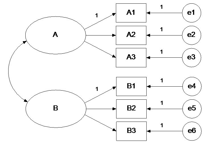 有没有人可以帮我解答一下,2阶的模型,各潜变量之间的相关关系要怎么做?具体来说就是这样:有 A , B 2个2阶潜变量,A潜变量下边有A1 ,A2,A3, 3个一阶潜变量,B下边也有B1 ,B2,B3 ,3个一阶潜变量,看人家说将各潜变量建立双箭头就可以,A1 ,A2,A3之间可以建立双箭头,可是A和A1 ,A2,A3之间呢?要怎么建立?请大神帮忙解答一下,非常感激