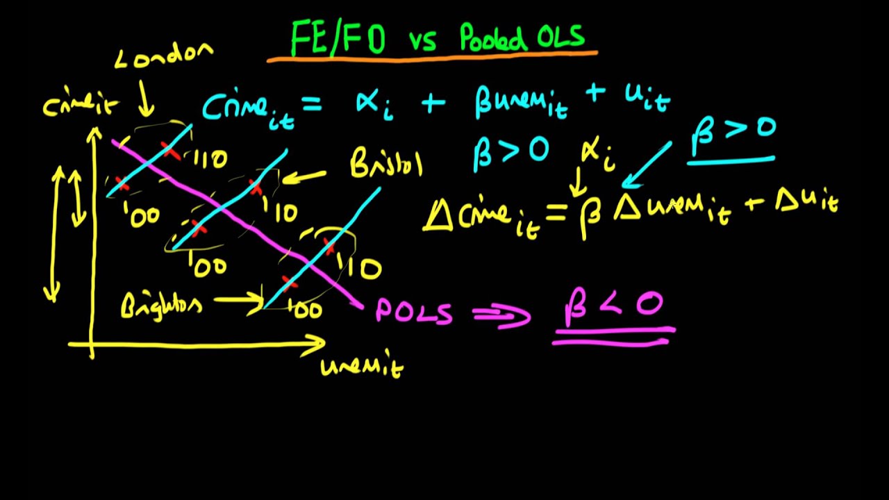 1. **时间相关的遗漏变量:**可能存在一些与时间相关的变量(如经济周期、季节性因素等),这些变量在未控制时间固定效应时被忽视了。在控制了这些因素后,原本的正向关系被"纠正"为实际的负向关系。