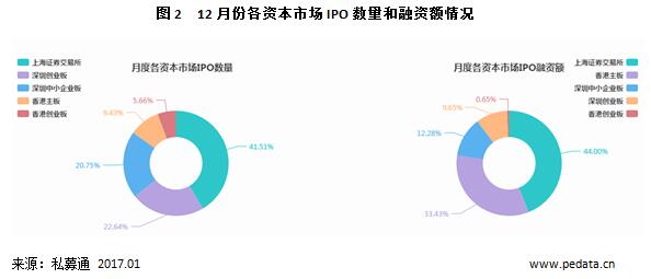 12月份共有53家主营地在中国大陆的企业上市。其中,登陆上交所22家,占比41.51%;深圳创业板12家,占比22.64%;深圳中小企业板11家,占比20.75%;香港主板5家,占比9.43%;香港创业板3家,占比5.66%。