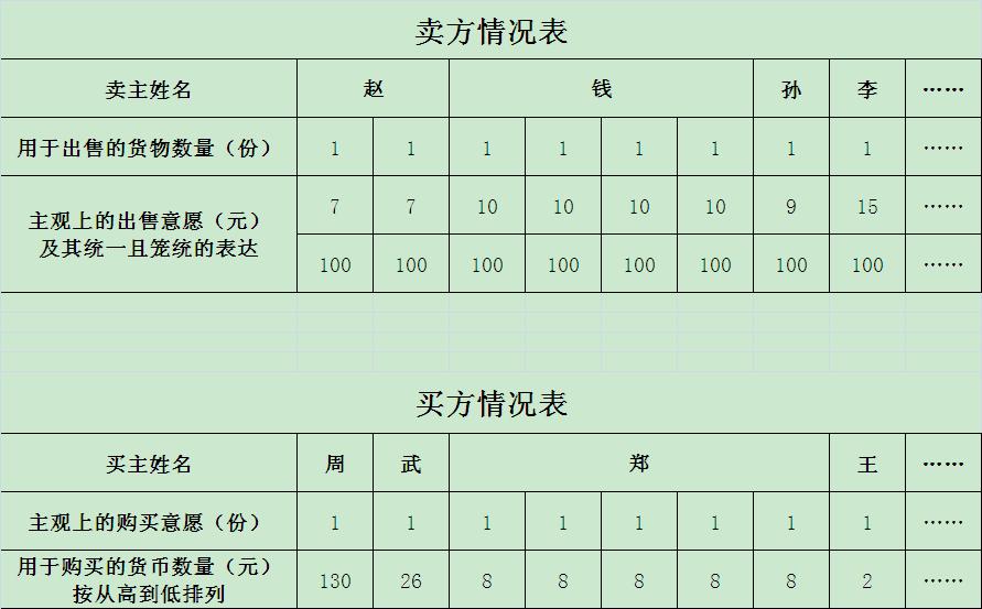 其中,在需求曲线上,买主们在一份份的货物上,分别提供了一些购买力,这也是外在的客观的量。