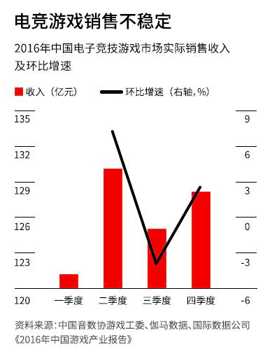 腾讯最新财报数据显示,2016年三季度游戏收入182亿元,同比增长27%,但并未细分披露电竞业务收入。从行业整体情况来看,《2016年中国游戏产业报告》显示,2016年中国电竞游戏市场实际销售收入占游戏市场收入的比例为30.5%,若以此比例推算,腾讯2016年三季度电竞收入或达55亿元左右,全年接近200亿元。
