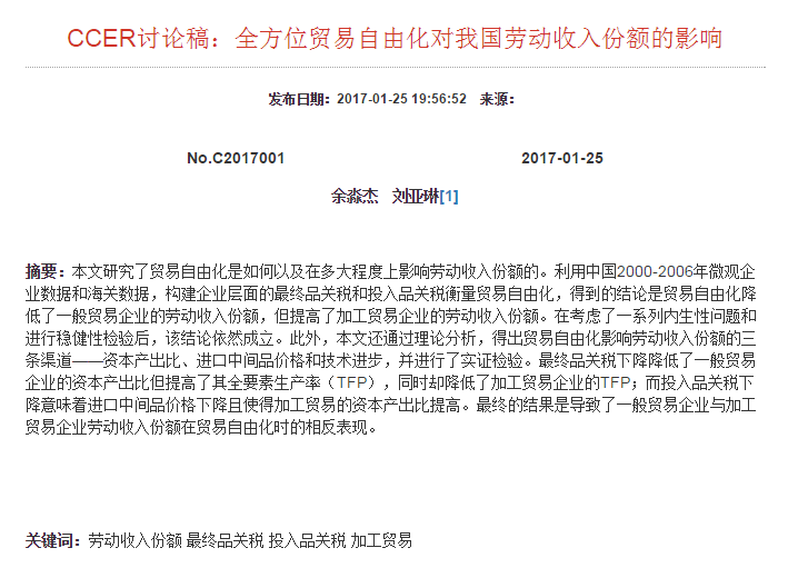 [Working Paper]全方位贸易自由化对我国劳动收入份额的影响
