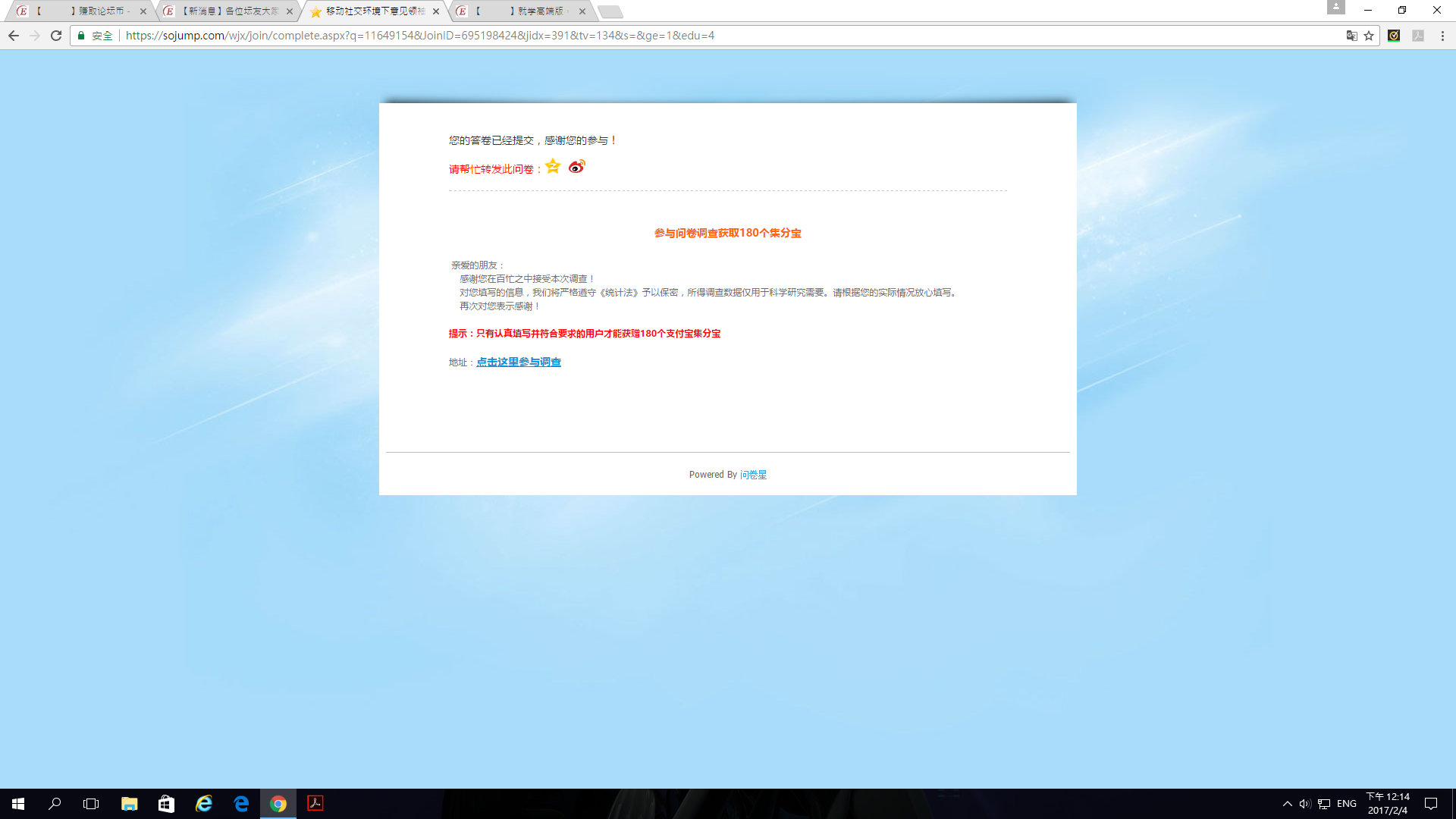 问卷完成