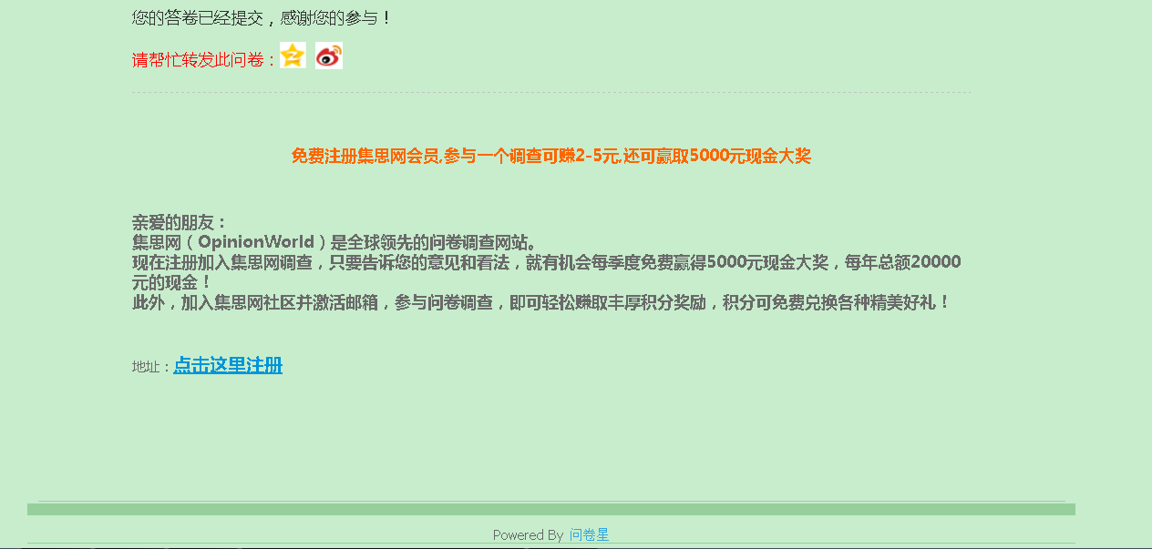 移动社交环境下意见领袖对消费者购买意愿的影响研究 --问卷填写完成页面