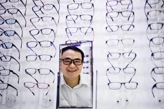 梁伟峰,25岁,广东肇庆人,2009级广东轻工业职业技术学院市场营销专业学生,在学校做代理、开精品店捞到了第一桶金,毕业后在出版社工作数月后辞职,决心开始创业,2014年8月在番禺大石拥有了自己的实体自营眼镜店。视觉中国供图