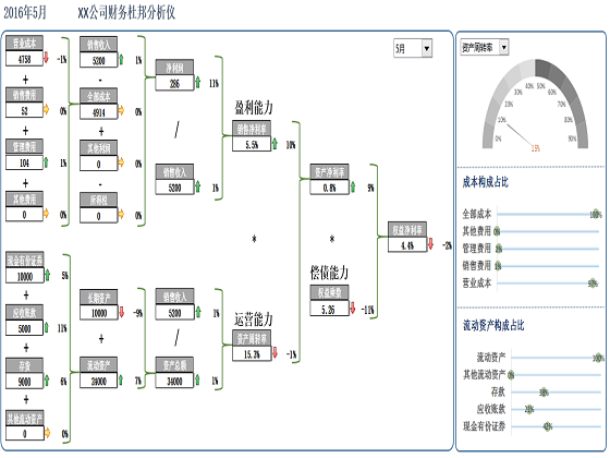 经过Excel高级处理后得到的以杜邦分析法为基础的交互式财务报表,可以