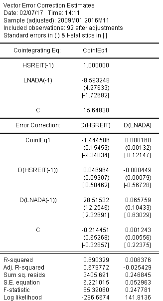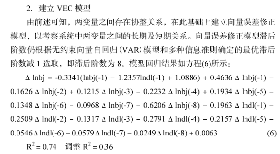 请问以下eviews跑出来的结果,怎么用文章中类似的思路的解读,文章的数据和eviews的数据不一样哈,不过方法都是vec,但是我不知道怎么样依葫芦画瓢,我知道文章中的滞后阶数比我多,但是就目前我跑出来的这个结果,如何解读出模型回归方程呢