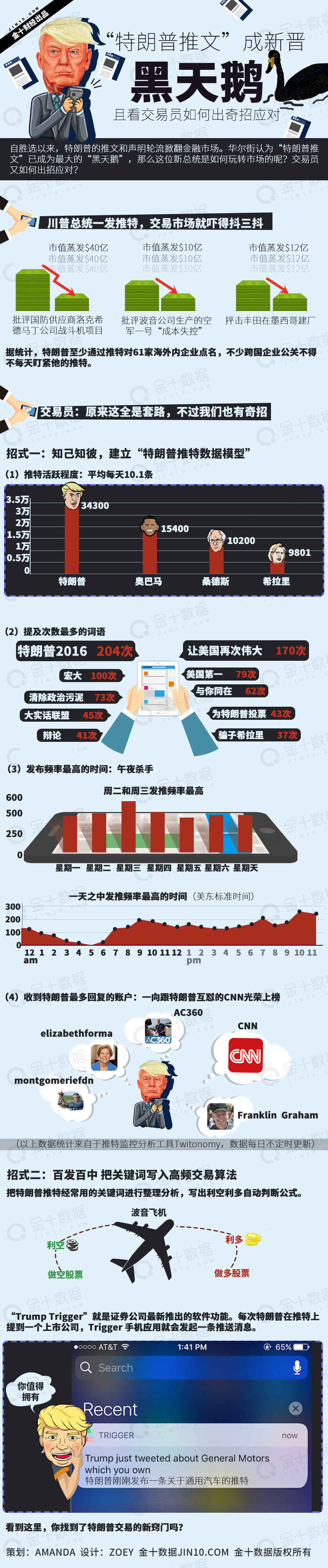 自胜选以来,特朗普的推文和声明轮流掀翻金融市场。华尔街认为“特朗普推文”已成为最大的“黑天鹅”,那么这位新总统是如何玩转市场的呢?交易员又如何出招应对?