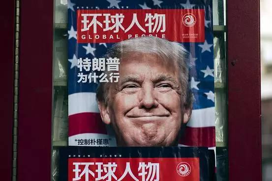 上海一家报刊亭的一本封面为特朗普的杂志。图片来源:Agence France-Presse/Getty Images