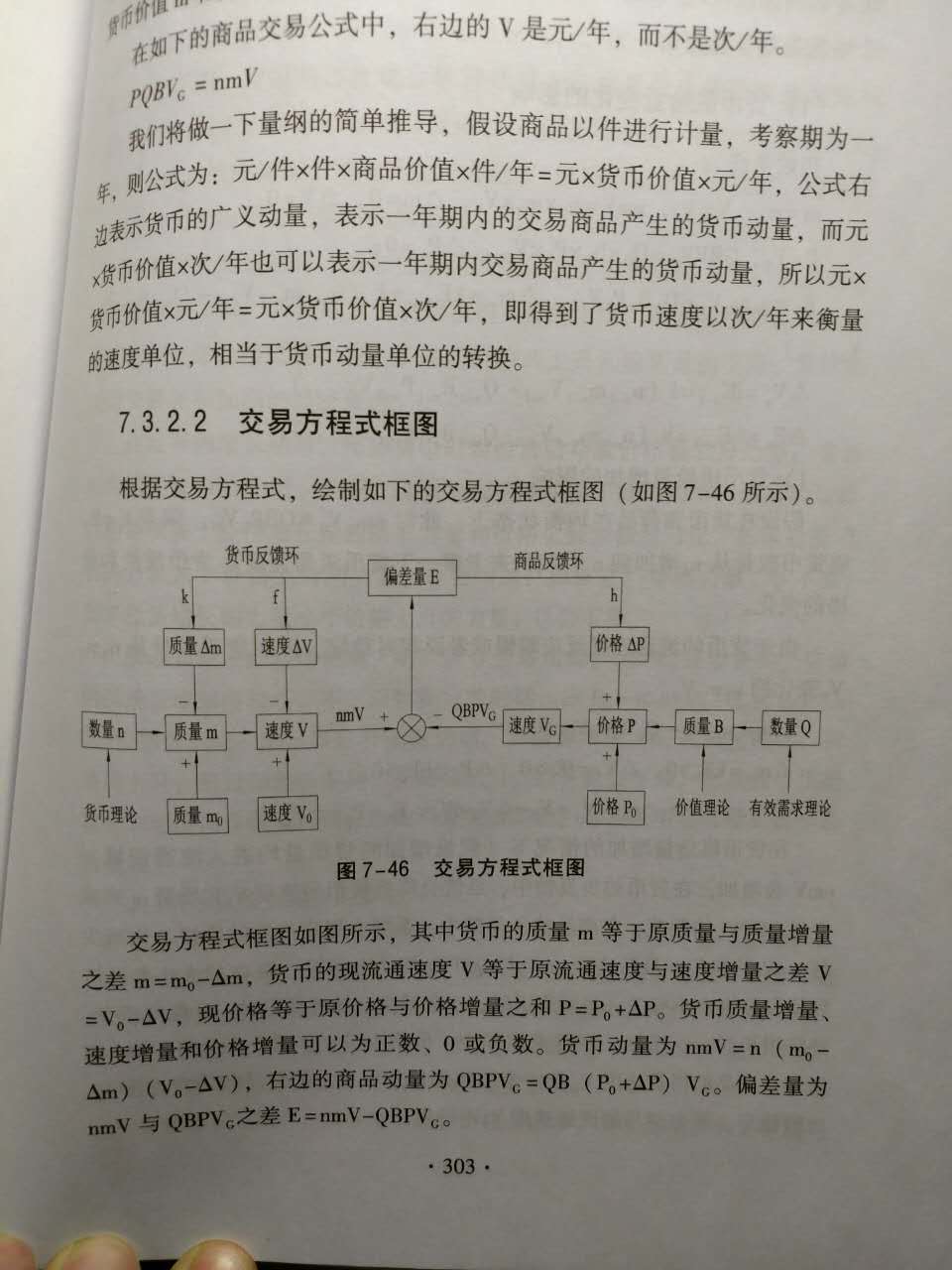 4. 给出了交易方程式的系统框图,它是由商品负反馈环和货币负反馈环组成。