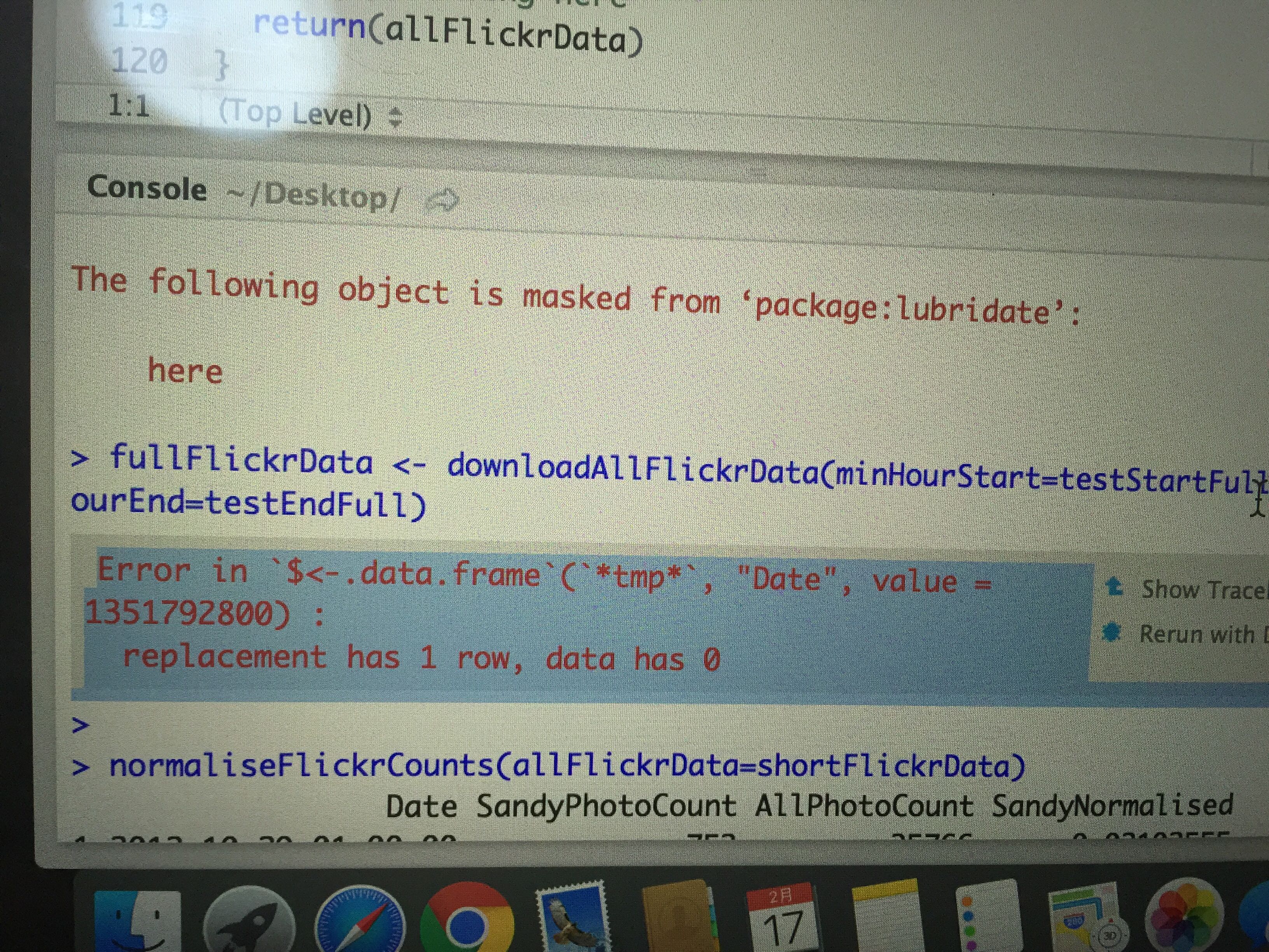 出现如图error,这里testStartFull是2012-10-29 00:00:00,end的是2012-11-01 23:59:59。如果用2012-10-29 01:00:00到2012-10-29 04:59:59就运行的很好。不知道为什么啊,要哭了