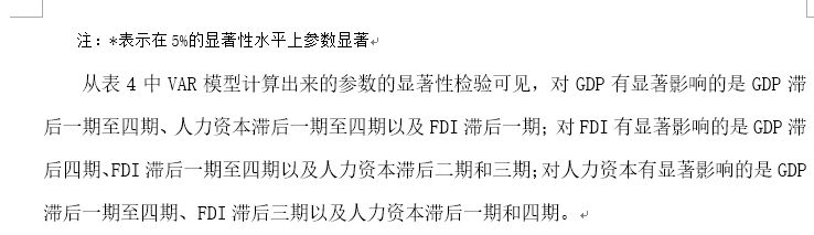 各位大神好:最近小女在毕业论文中被论文折磨的不要不要的,只能在论坛上找大神帮忙,我的题目是:FDI、人力资本与福建省经济增长关系的实证研究,跪求问下表的结果如何分析,谢谢啦