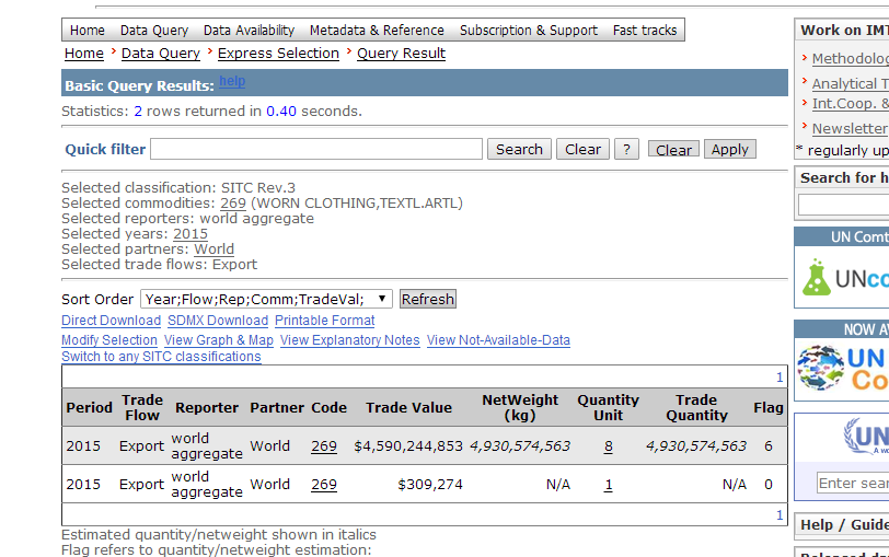 求助:如何在联合国数据库中查找某种商品世界出口总量?