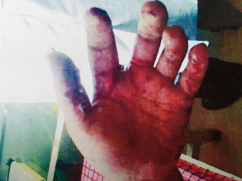 高云波说:“2014年6月11日,黑龙江省金宁建筑有限公司会计李延芳打电话给我,通知我去算账,原以为这次可以结清工资,没想到我和我媳妇张文敏却遭遇了一顿毒打。我们算完账刚走出公司门口,就遭到三个手持镐把、砖头的蒙面人殴打,顿时被打得头破血流,幸亏好心路人拨打120急救电话,才被送往延寿县人民医院救治。”