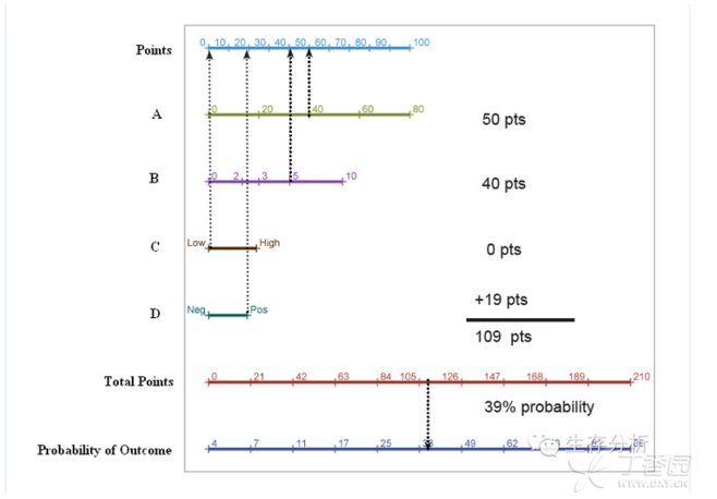 如何在列线图上直接增加上颜色?(当然,可以在生成PDF后倒入AI进行手动加工处理),如下图所示: