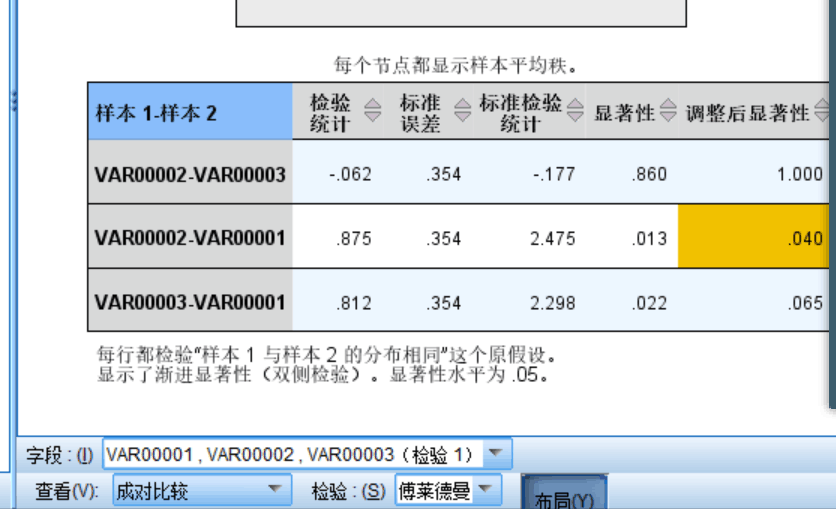 求助:谁知道两两配对FRIEDMAN检验是怎么回事啊?