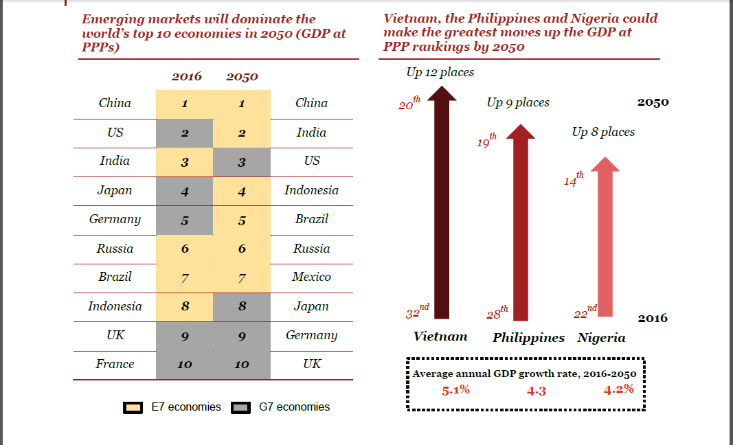 5.从现在到2050年,越南将会是经济增长速度最快的经济体,届时将会跻身全球经济20强