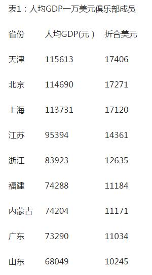 人均GDP比拼:9省超1万美元 广东少于内蒙古