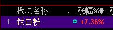 前段时间市场一直在炒作环保板块,处在高污染的版块中的钛白粉一直没有表现的机会,动不动就被扣上高污染的帽子。近期环保板块的炒作热情降低给钛白粉的乏力提供了机会,或者说找到一个乏力的间隙。