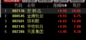 其中 安纳达 佰利联是整个行情的主要龙头,今天都走出了不做的涨幅。