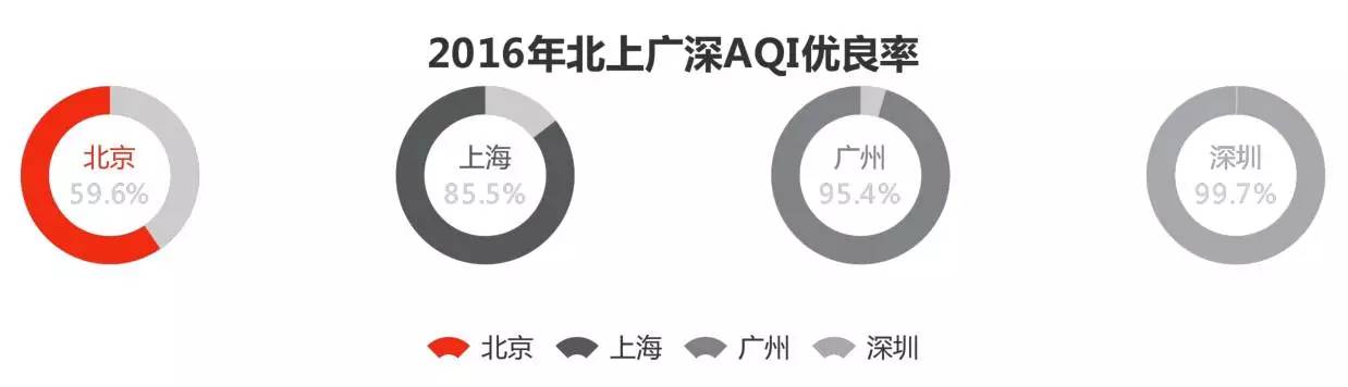 深圳、广州以及上文没有提及的厦门(近三年空气达标率都在95%以上),依然可以打“空气好”这张牌,空气质量的优越可以给这些城市带来锦上添花的吸引力;