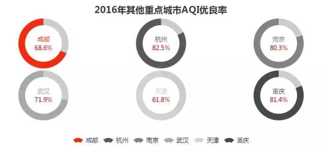 但唯独成渝地区的两个重点城市---成都和重庆出现了一定落差:重庆的AQI优良率尚能维持在81.4%,但成都仅为68.6%。