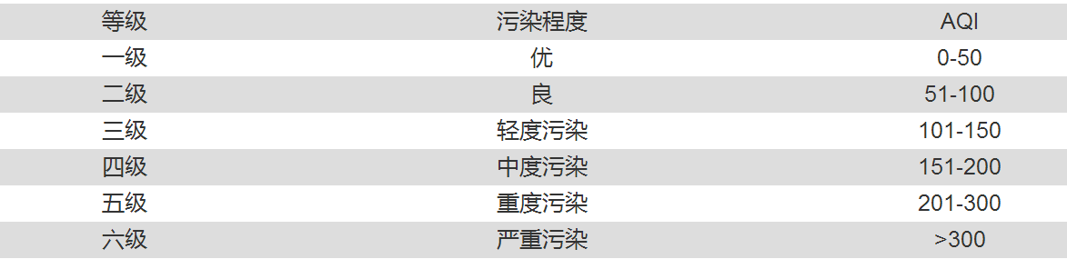 衡量空气质量好坏的指标是空气质量指数(以下简称AQI),取值范围为0-500,根据指数再划分出五个空气质量级别。简单来说,指数越大、级别越高说明污染越严重,对人体的健康危害也就越大。