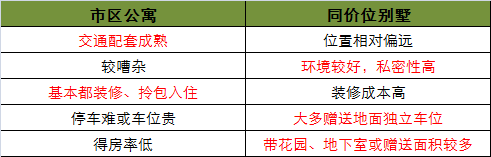 同样的预算,是在市区选高层住宅或大平层还是选位置相对偏远的别墅,对于有改善需求或高端人士来说,这是个比较普遍的问题。通过比对,两者的差别其实还是很明显:
