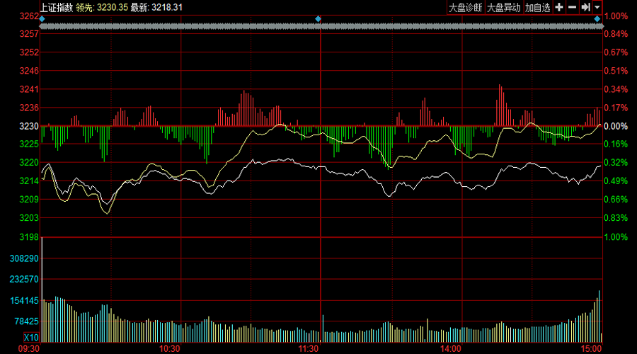 截至收盘,上证指数报3218.31点,跌0.36%,成交1927亿;深证成指报10397.05点,涨0.29%,成交2569亿;创业板指报1928.29点,涨0.41%,成交730.8亿。