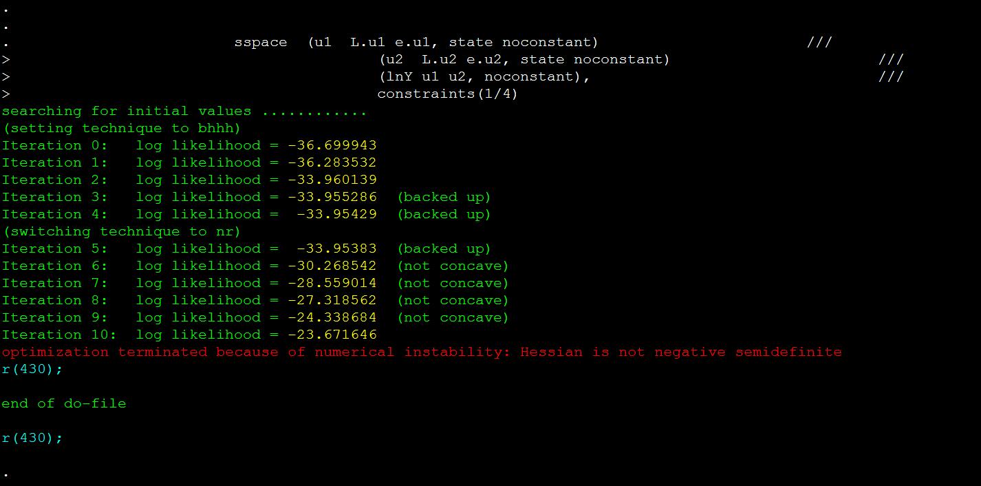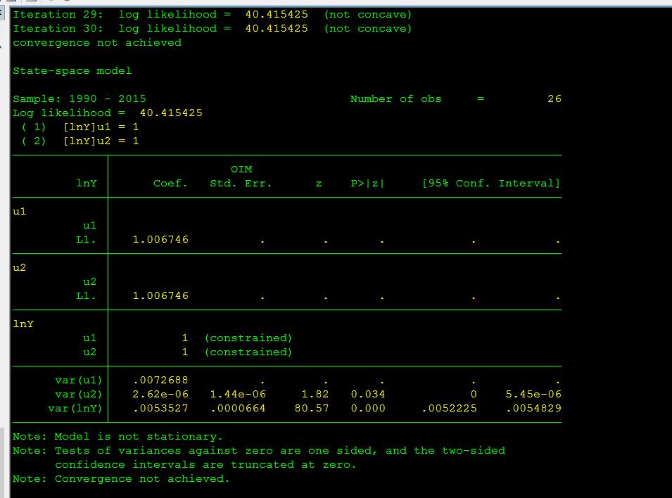综上,我似乎必须用stata做状态空间模型,而我对help sspace,以及[TS]手册相关内容已经进行了尝试,结果不尽人意,希望大家能给我帮助,指出我的错误。