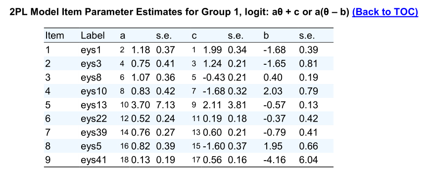 IRTPRO学生版计算出的难度a,区分度b,猜测度c三参数怎么看,为什么c的值大于1?为什么两参数模型也有a,b,c?求大神指导!