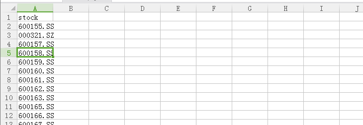 里面的内容很简单,就是沪深两市的股票代码,深圳股票代码后缀.SZ,上海股票代码后缀为.SS(例如000510.SZ,600023.SS)相关的指数板块按照交易所的划分后缀名类似于股票代码后缀。