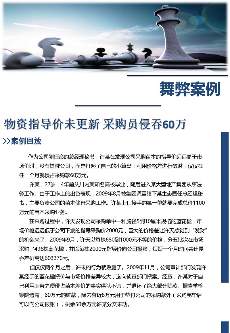 【舞弊案例】物资指导价未更新 采购员侵吞60万