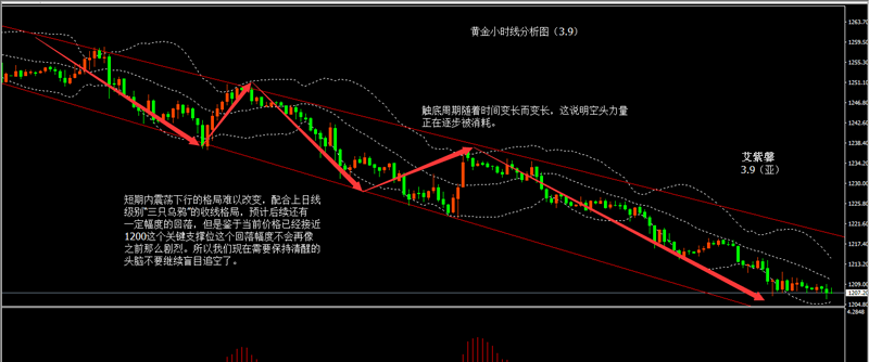 具体盘面,昨天美盘笔者在分析中已经给出了不要过于追空,不然容易导致自己的仓位陷入被动。如果在昨晚建仓持单了,现在这个点位对于空单来说是比较不利的,笔者艾紫馨个人建议已经建仓的朋友在单子保本或者小赚先抛掉。因为目前价格已经接近笔者一直强调的1200强支撑一线了。如果还执意留空,风险较大。对于今天日内的操作来说,笔者个人建议选择观望。随着非农的临近,市场也变得愈发蠢蠢欲动起来,我们需要等待行情给出明确的利空或者利好的指引,才能确定后续具体方向。