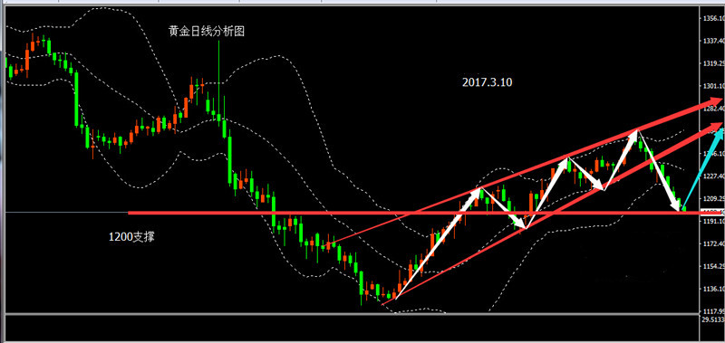 笔者例如一种情况,如果非农与本次ADP数据表现并不符合(利好金银或者数据持平),那么像目前这种连续下跌的行情预计将会有所缓和,就算出现惯性下滑也不会有很大的深度,千二关口下方的1180是一个值得肯定的支撑点。所以如果数据是这个表现的话,我们就可以排除大跌的可能。然后从黄金日线图的均线结合前期横向压制来看,上方1210-1215这两个千二关口上方的阻力是足够阻挡非农带来的反弹的。所以综合来看如果数据是利好或者持平,黄金价格将会在1180-1215区间震荡,具体涨跌先后顺序还需要看数据具体情况。时间原因笔者就不再举例非农利空的走势了,有疑问的朋友不妨与笔者艾紫馨本人聊一聊,互相进步。