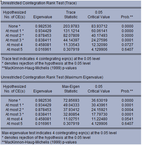 存在几个协整关系,是哪几个变量存在协整关系?