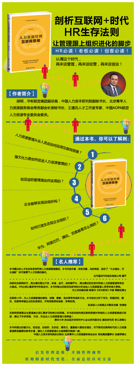 在本帖回复或关注微博@经管之家分享你关于人力资源管理前沿思维、经验或对本书的评论,我们将抽取10名获奖的朋友,赠送图书《人力资源管理互联网思维》一本。