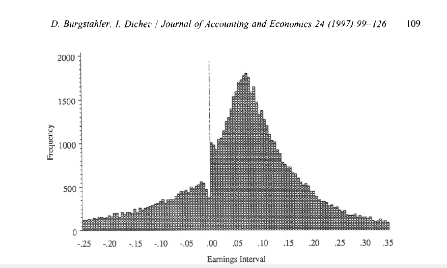 各位大神,本人最近正在写一篇上市公司盈余管理迎合分析师预测的毕业论文,看到外文中Burgstahler D,Dichevb I在1997年发表的一篇《earnings management to avoid earnings decreses and losses》的文章,用到了一种方法,考察盈余意外在阈值点的分布情况(如下图所示)来判断上市公司是否存在避免盈余下滑或盈余损失而进行盈余管理的动机,请问有没有人知道在stata中应该怎么处理呢?或者有没有人写过类似主题的文章可以加个扣扣交流一下
