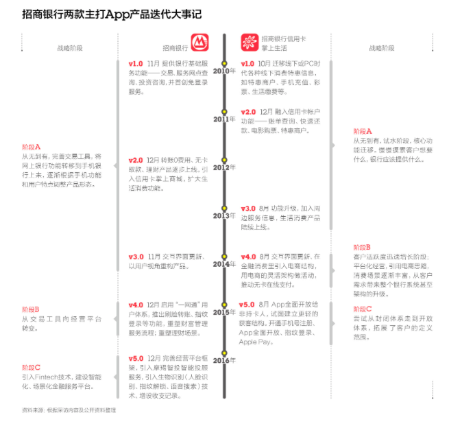 以每一两年推出一个迭代版本这样缓慢的节奏,4.0版本之前的“招商银行”和“掌上生活”两款App,用了差不多四五年的时间,方才完成“银行移动互联网化”的第一阶段:从无到有,顺其自然地就把一些账单、查账往手机客户端逐步迁移。