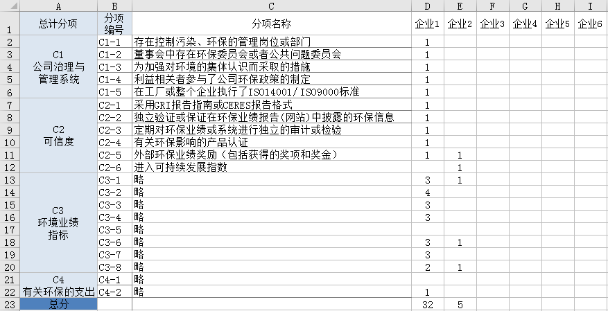 我将企业环境责任的计分项分为4大部分,每部分又有各自的几项指标。通过查阅企业相关报告,可以基于此表对各企业的环境责任进行计分,计分工作由我本人来完成。想请教下诸位,这种量表的信度与效度该如何测量?